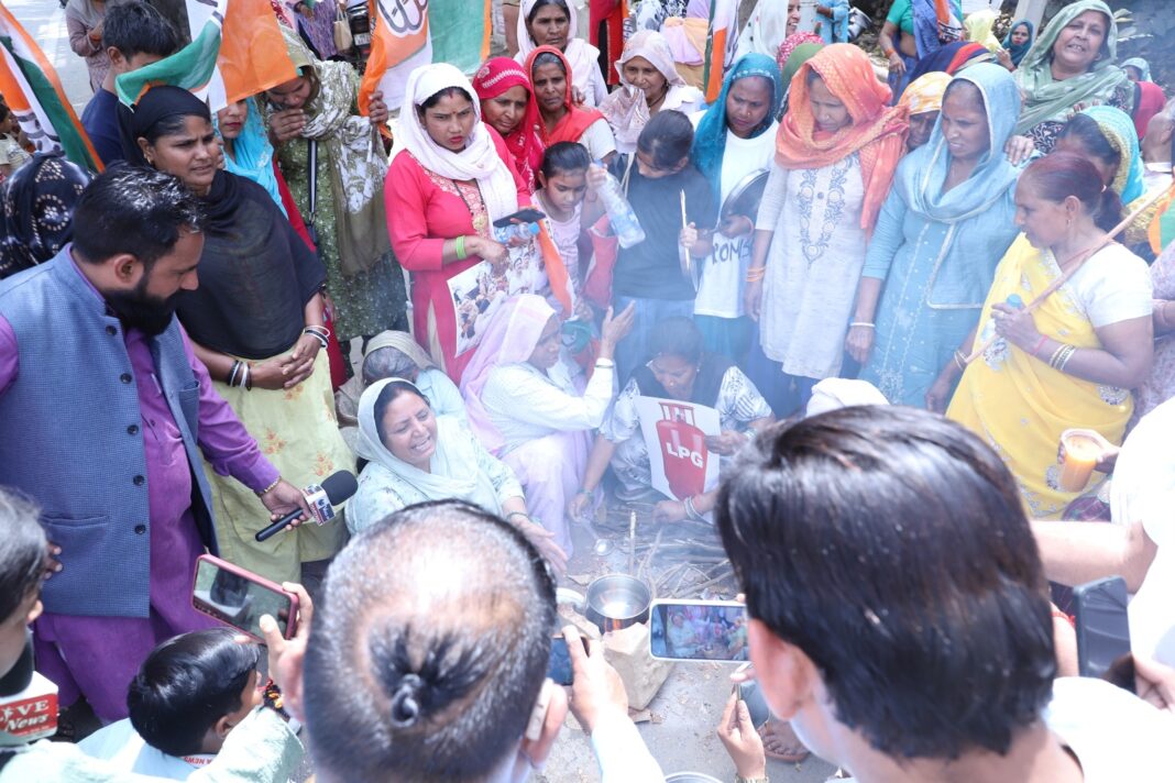 मिटटी का चुल्हा सिर पर रख कर किया विरोध प्रदर्शन