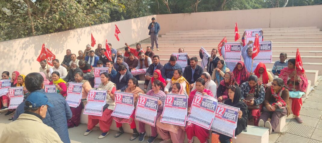 फरीदाबाद, राकेश देव। विभिन्न केंद्रीय ट्रेड यूनियनों एवं कर्मचारी संघों के आवाहन पर श्रम अधिकारों की रक्षा में और पूंजीपरस्त नितियों के विरोध में आगामी 12 फरवरी को होने वाली देशव्यापी हड़ताल एतिहासिक होगी। इसको सफल बनाने के लिए फरीदाबाद में सेंटर ऑफ इंडियन ट्रेड यूनियन सीटू जिला कमेटी की जनरल बॉडी मीटिंग ओपन एयर थियेटर में हुई।इसकी अध्यक्षता जिला प्रधान निरंतर पराशर ने की जबकि संचालन जिला सचिव वीरेंद्र सिंह डंगवाल ने किया। उन्होंने हड़ताल के महत्व पर प्रकाश डालते हुए बताया कि केंद्र की सरकार मजदूरों के अनगिनत संघर्षों के बाद हासिल किए गए 29 श्रम कानूनों को समाप्त करना चाहती है । इनके बदले चार श्रम संहिताएं बना कर उनको लागू करने पर आमादा है। यदि यह श्रम संहिताएं लागू हो जाएगी तो मजदूरों के काम के घंटे 8 से बढ़कर 12 हो जाएंगे। उन्हें किसी भी प्रकार की सुविधा नहीं मिलेगी। अब तक मिल रही है। सभी सुविधाएं छीन ली जाएगी। यूनियनों का रजिस्ट्रेशन नहीं होगा। सभी प्रकार की गतिविधियों पर रोक लगा दी जाएगी। उन्होंने कहा कि हड़ताल को कामयाब करने के लिए सभी कारखानों में श्रमिकों की गेट मीटिंग की जाएगी। हड़ताल का व्यापक प्रचार प्रसार किया जाएगा और राज्य स्तर का जीप जत्था फरीदाबाद में एक और 2 फरवरी को विभिन्न कार्यालयों में जाकर सभाओं को संबोधित करेगा। इस मीटिंग को भारत गेयर यूनियन के प्रधान रवि,ग्रामीण सफाई कर्मचारी यूनियन के जिला प्रधान देवी राम, आशा वर्कर यूनियन की प्रधान हेमलता , आंगनवाड़ी वर्कर और हेल्पर यूनियन की प्रधान मालवती,सीटू उपाध्यक्ष शिव प्रसाद, ओएमपी के प्रधान अरविंद कुमार, आटो रिक्शा ड्राइवर यूनियन के प्रधान भोपाल सिंह, मिड डे मील की प्रधान कमलेश, स्टार वायर के कोषाध्यक्ष सुभाष कुमार, जीकेएन के सचिव नरेश कुमार सोलंकी, सीटू जिला कमेटी के सह सचिव केपी सिंह जिला कमेटी सदस्य वीरेंद्र पाल ने भी संबोधित किया। सभी ने अपने-अपने फैक्ट्रीयों में पूर्ण रूप से हड़ताल करने का दावा किया। आशा वर्कर, आंगनवाड़ी वर्कर मिड डे मील वर्कर एवं ग्रामीण सफाई कर्मचारी यूनियन पूर्ण रूप से काम बंद रखेंगे। यूनियन की मुख्य मांगों में मजदूर विरोधी लेबर को कोड्स रद्द करो, न्यूनतम वेतन 30 हजार रुपए प्रतिमाह माह करो, ठेका प्रथा निजीकरण बंद करो, मनरेगा को मजबूत करके बहाल करो, न्यूनतम पेंशन 10 हजार रुपए मासिक करो, पुरानी पेंशन स्कीम बहाल करो, बीमा क्षेत्र में 100% एफडीआई का निर्णय वापस लो, बिजली बिल 2025 रद्द करो, न्यूनतम समर्थन मूल्य लागू करो, आज की बैठक में देवेंद्री शर्मा, मीनू,अनीता चेची , पूजा गुप्ता, शाहीन परवीन, संतु कुमार, विनोद, मनोज, मुकेश भड़ाना, सुनील गोस्वामी, संजीव कुमार, संतोष ,रंजीत रावत, कुसुम लता